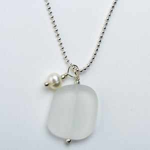 White Sea Glass Necklace with Charm